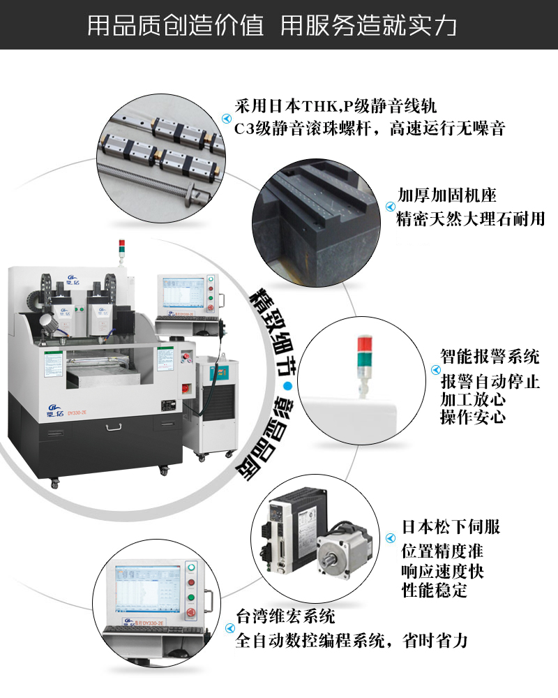 引進(jìn)臺(tái)灣先進(jìn)的生產(chǎn)工藝,為您提供最精密最穩(wěn)定的火花機(jī)、玻璃精雕機(jī)的同時(shí)讓您生產(chǎn)出更具市場(chǎng)競(jìng)爭(zhēng)力的產(chǎn)品!